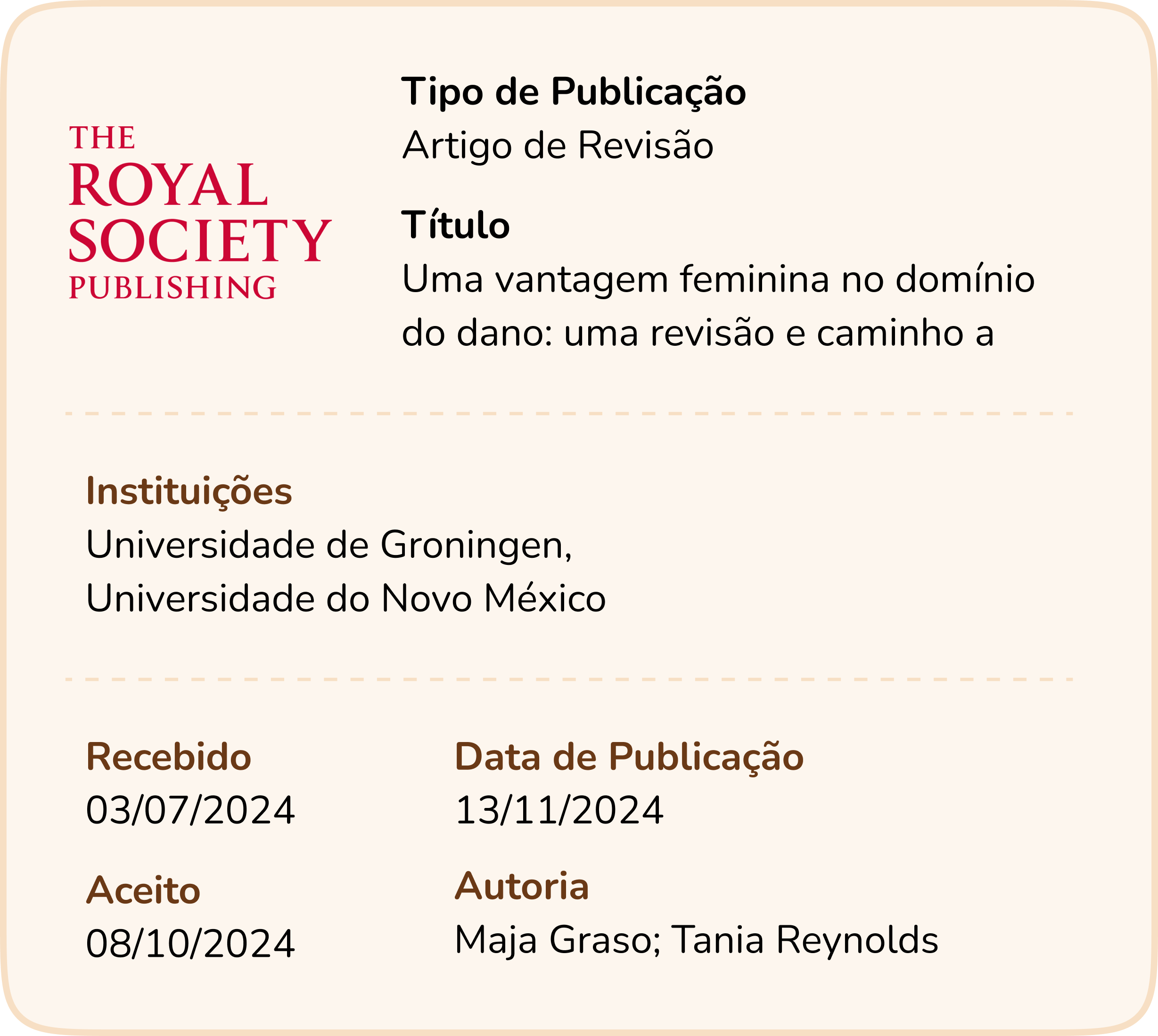“As mulheres tendem a ser muito mais avessas ao risco do que os homens e adotam definições mais amplas de dano. Essa aversão ao risco se manifesta em contextos que variam desde decisões financeiras e empreendimentos de alto risco até o apoio a políticas sociais que protegem contra os riscos da pobreza. Assim, se as mulheres desenvolveram uma sensibilidade maior e uma motivação acentuada para evitar danos em comparação aos homens, os indivíduos podem detectar essas diferenças e, consequentemente, estarem mais atentos ao sofrimento feminino.”