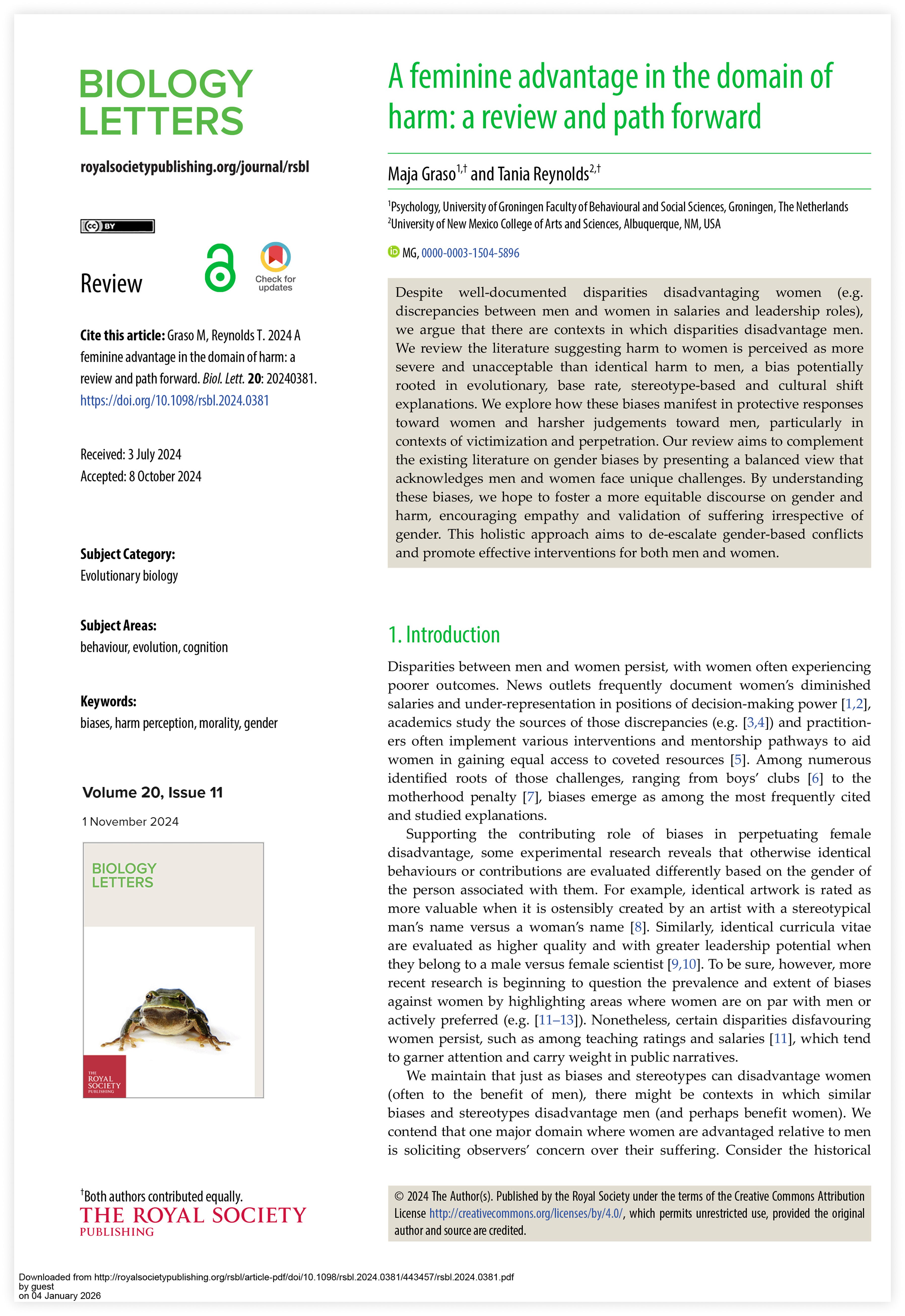 “Nossas quatro explicações propostas — ou alguma combinação delas — devem levar à previsão de que as pessoas exibirão respostas particularmente protetivas e solidárias ao sofrimento das mulheres em relação ao dos homens. As evidências desse viés na detecção de danos se manifestam em contextos que variam desde danos graves (como a morte) até formas menos tangíveis, incluindo representações simbólicas.”